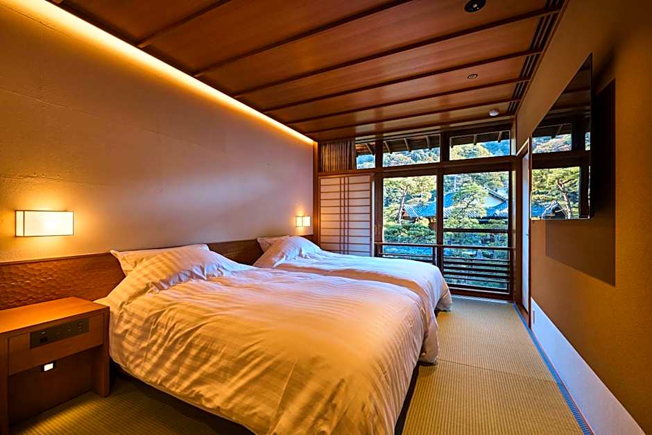 This spacious suite includes 1 living room, 1 separate bedroom and 1 bathroom with a bath and free toiletries. The air-conditioned suite offers a flat-screen TV with satellite channels, tatami, a mini-bar, a tea and coffee maker as well as garden views. The unit has 2 beds and 4 futons.